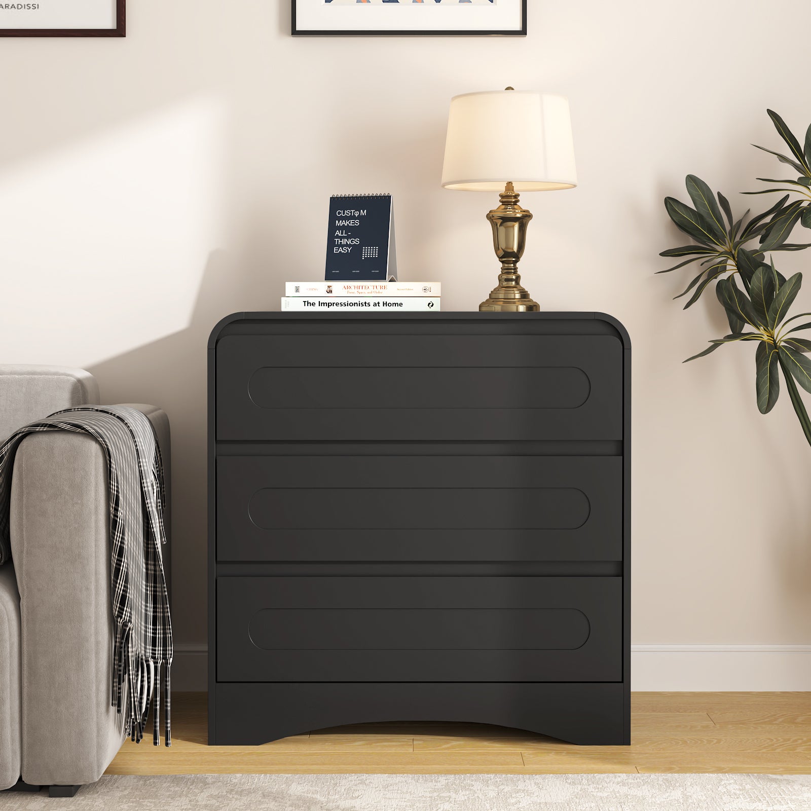 - Curved Modern Design for Safety & Elegance: The curved profile frame of this bedroom dresser blends sleek modern style with added safety, reducing the risk of bumps. Its minimalist aesthetic complements various decor styles, from cozy bedrooms to sophisticated living rooms.