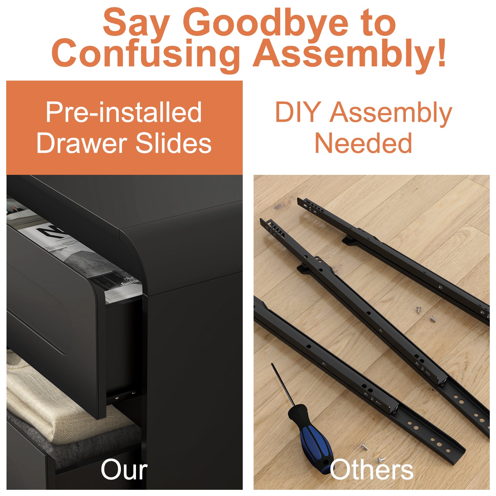 - 50% Faster Assembly with Pre-Installed Slides: Say goodbye to time-consuming setups—this 3 drawer dresser arrives with slide rails already in place, saving you nearly half the assembly time. The clear instructions make putting together your wood dresser simple; no need to worry about the complexity of assembly. It's easy and efficient