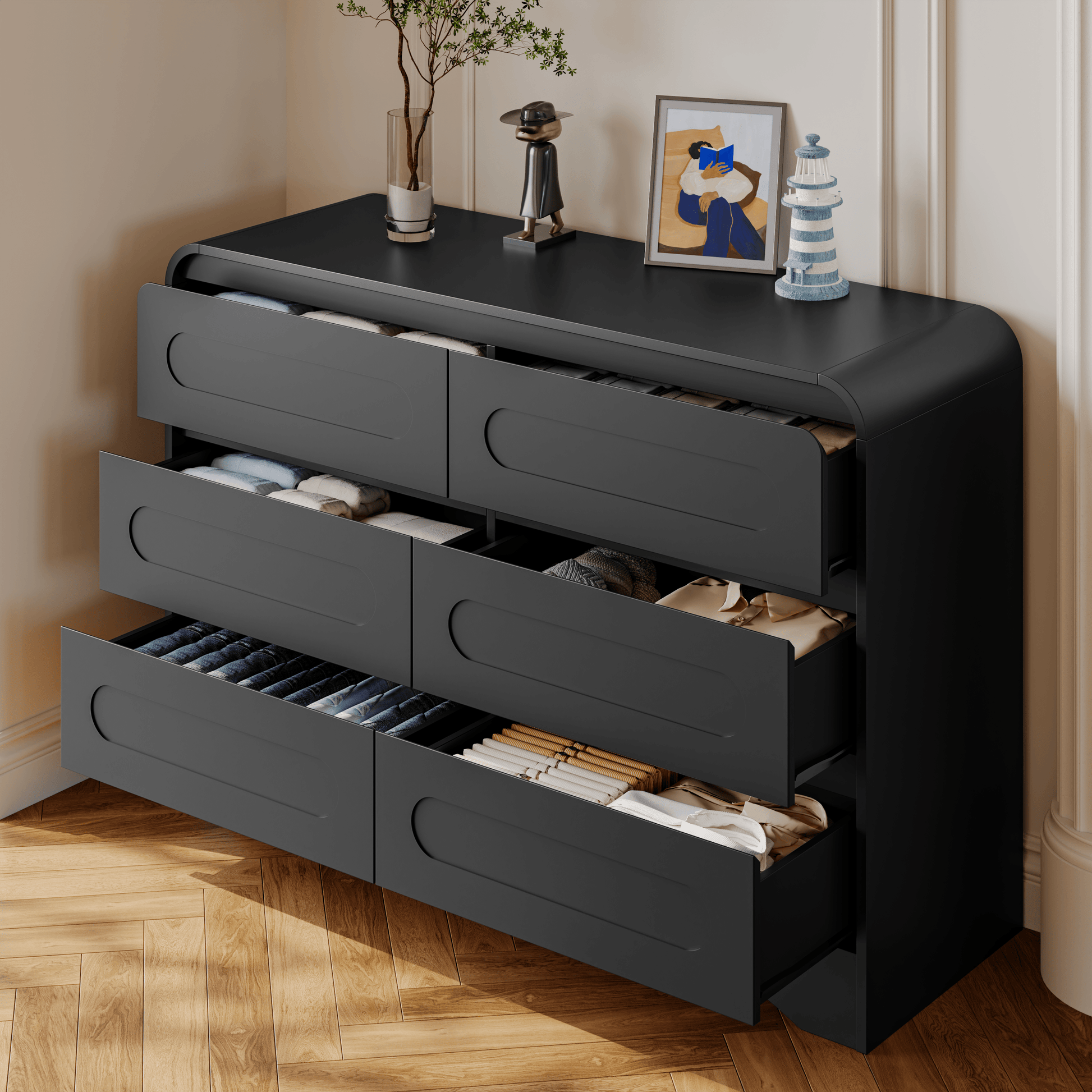 SOLACE FURNITURE 47" Wide 6 Drawers Dressers, Dresser Curved Profile Design for Bedroom