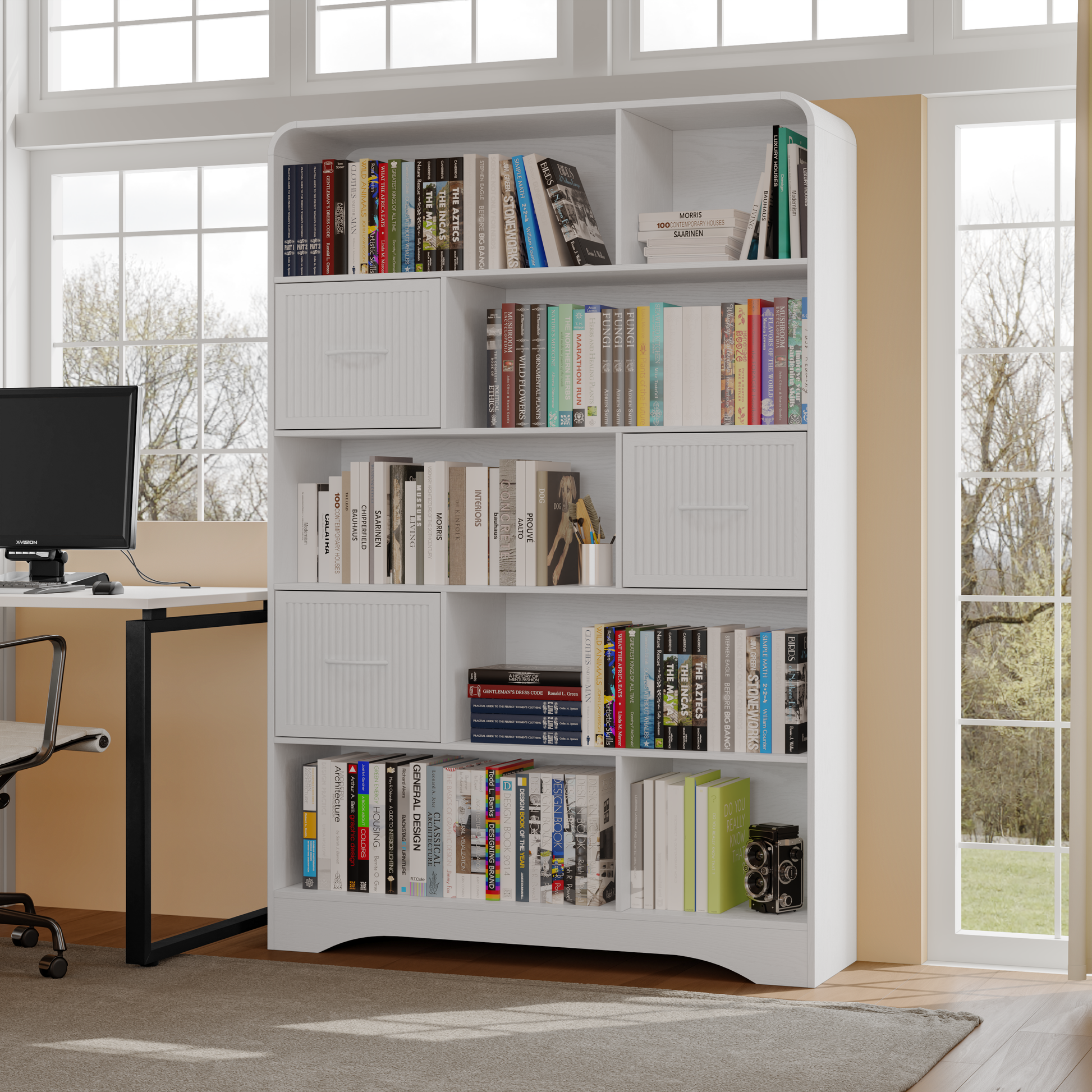 - Modern 5-Tier Bookcase for Living Room, Bedroom & Office – Enhance your space with this freestanding bookshelf designed with clean lines and gently curved edges. Featuring 5 spacious open tiers, it offers both functionality and elegance to organize books, plants, or décor in your living room, bedroom, or office. A modern book shelf that adds style and storage in one sleek design