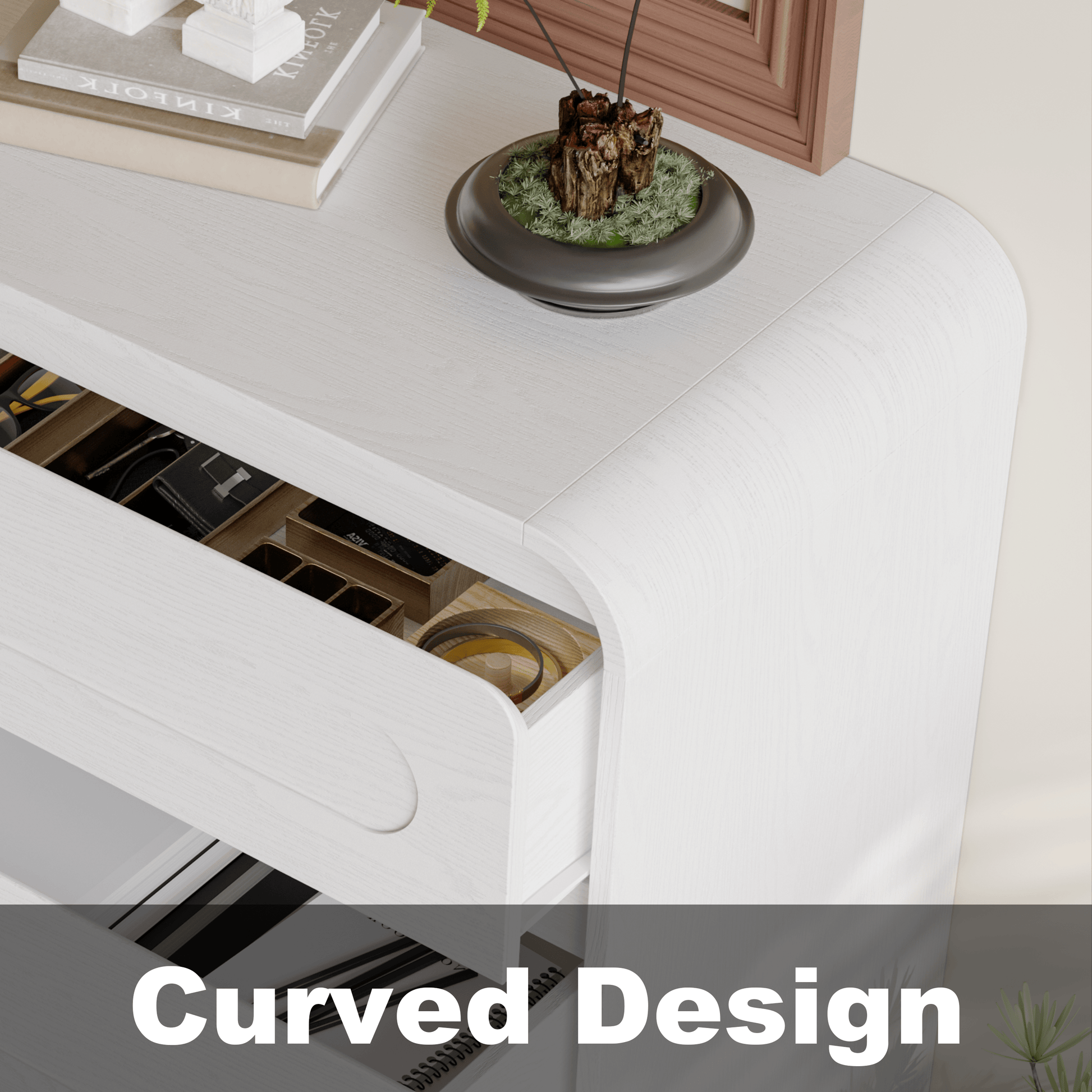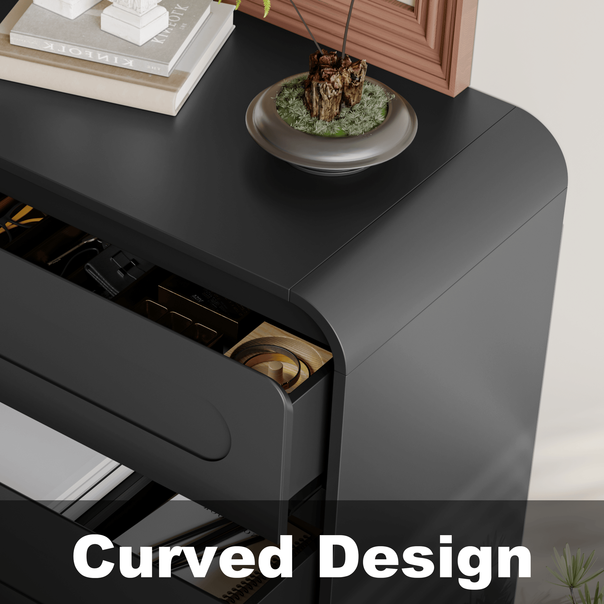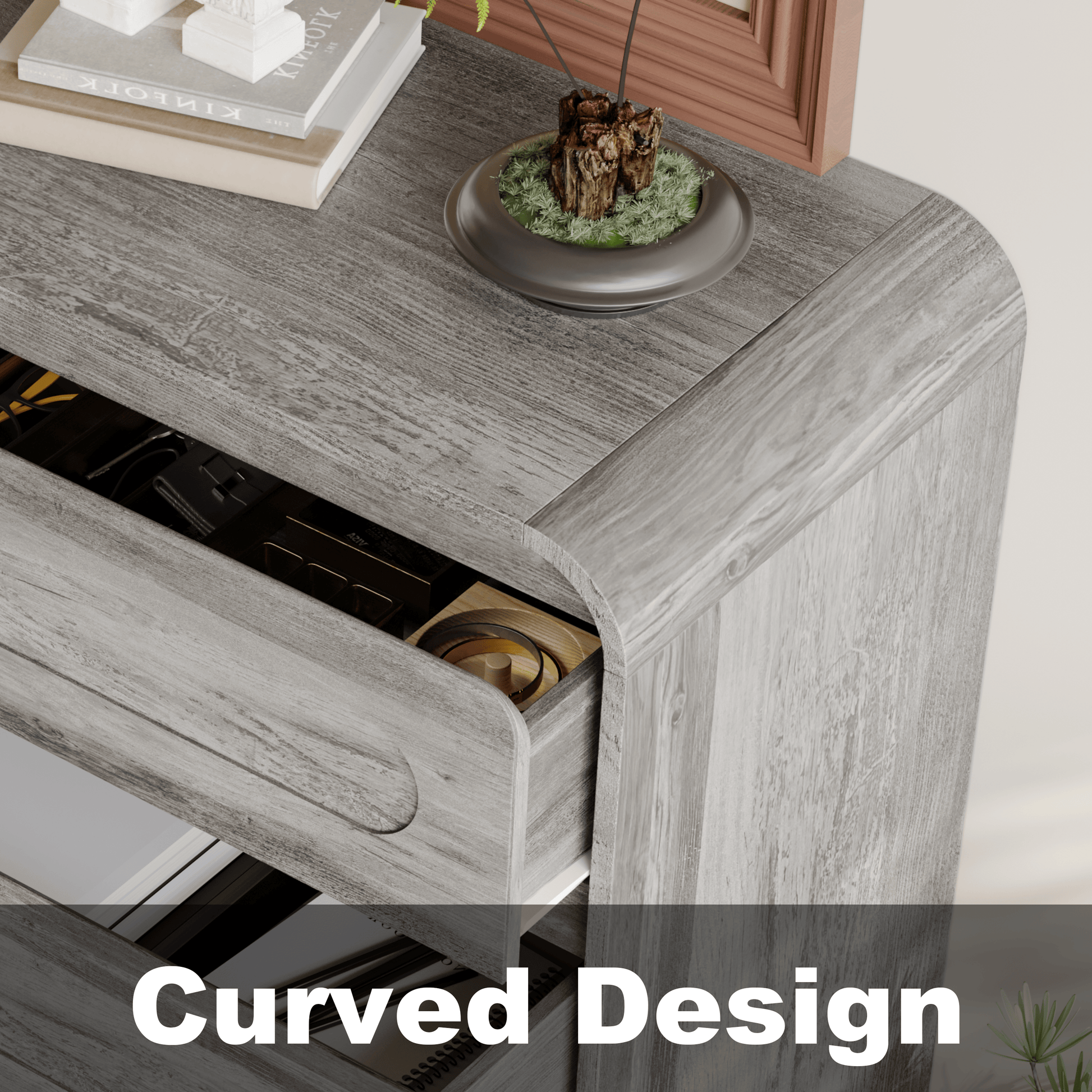 - Handcrafted Design: Enhance your space with this modern dresser, showcasing handcrafted curved patchwork drawer fronts and a smooth wood finish for a modern yet rustic appeal. The dresser adds a bold, high-end touch, blending effortlessly with modern, contemporary, or traditional decor