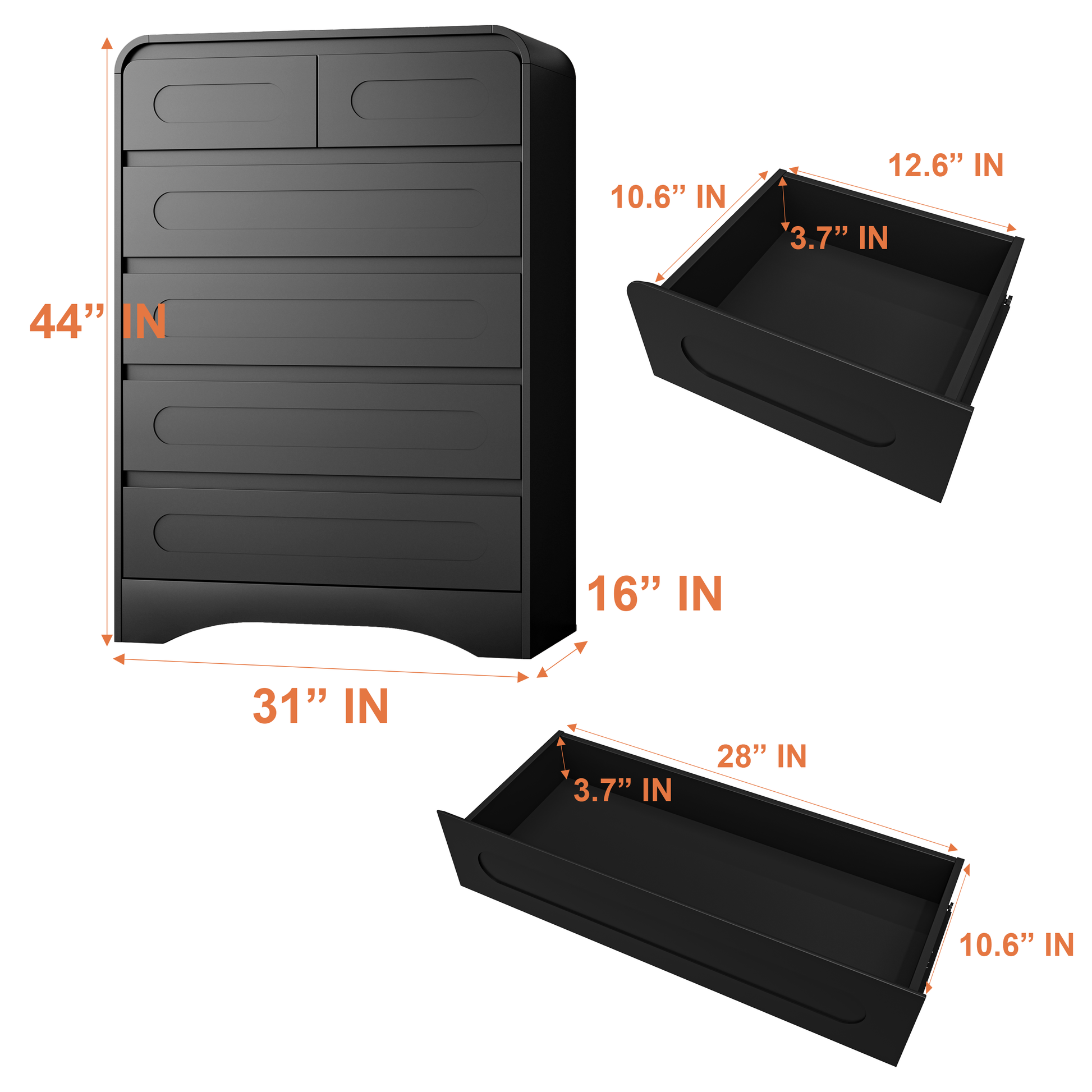 - Multiple Scenario Applications: Whether used as a bedroom dresser, storage or living room accent, this 6 drawer dresser adapts to any space. Its sleek, compact design (31"W x 16"D x 44"H) fits snugly in small rooms while offering functional storage for a clutter-free home